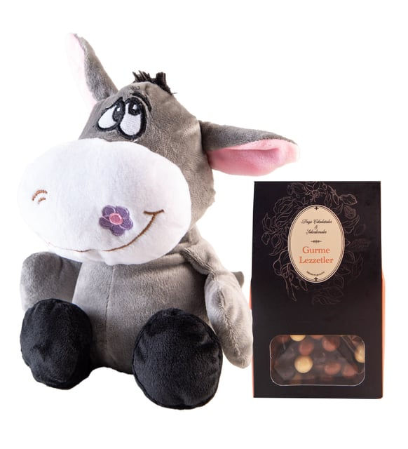 Peluş Eşek ve Kahveli Sütlü Draje Kutusu